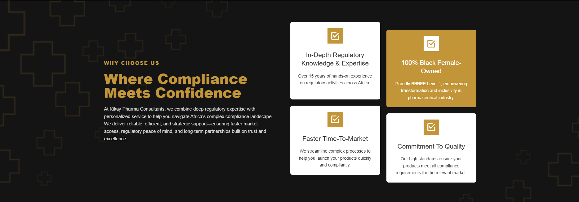 An informational site for a pharmaceutical consultant, focused on explaining services clearly to the public and creating a smooth path to contact and enquiries.